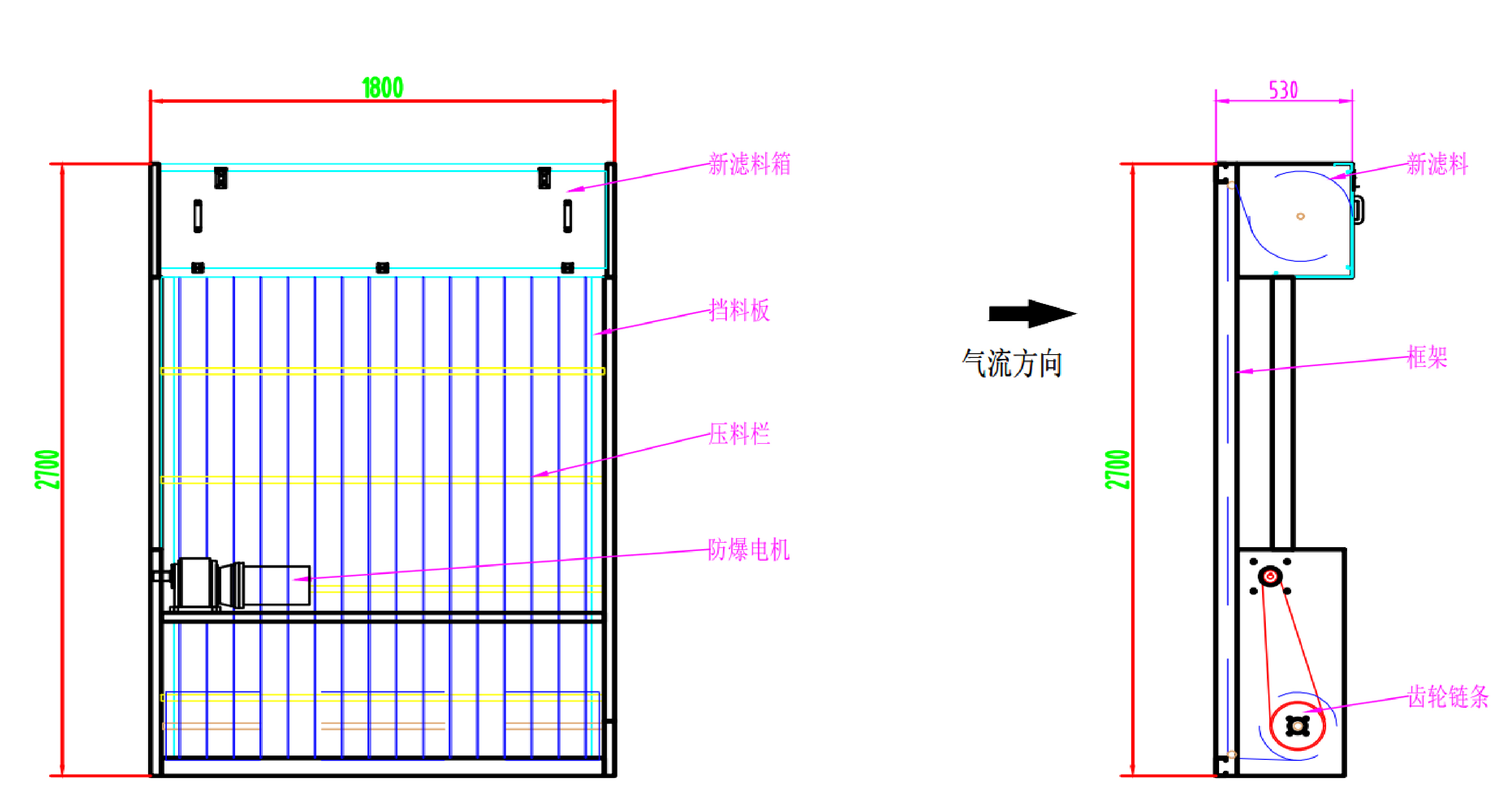 HRF-Ex防爆型自動(dòng)卷繞式過(guò)濾器三視圖