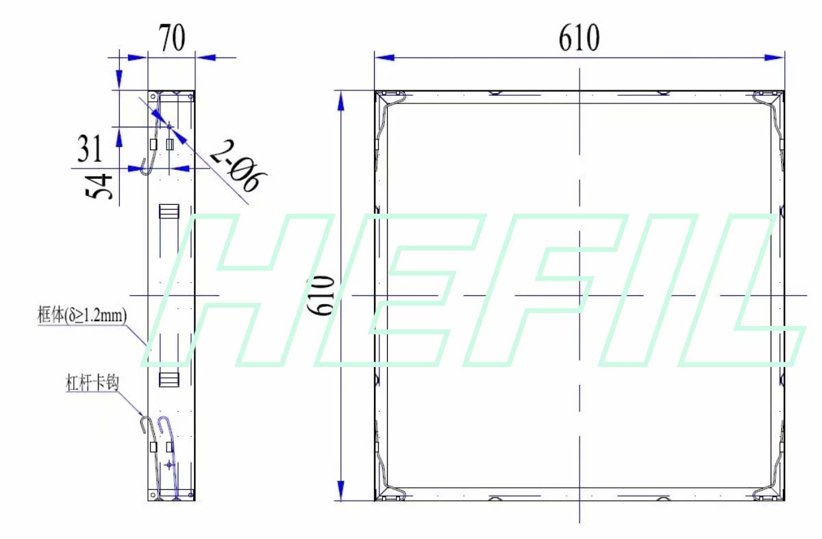 ◆HKF-L型過濾器安裝框架結構簡單,通用性強,用戶可以按所需風量組合于集中通風或空調系統的過濾段。