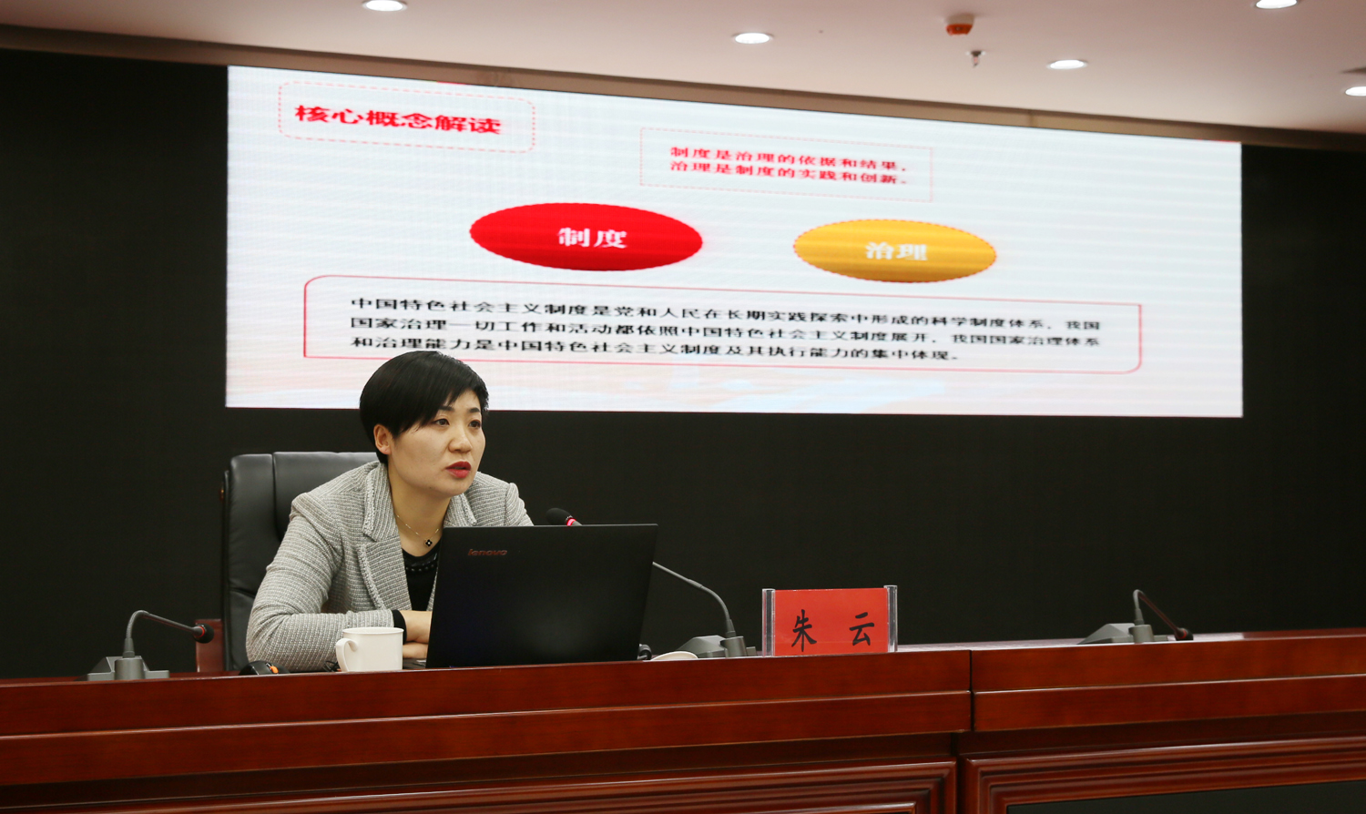 朱云以“開辟中國之治新境界”為題,緊緊圍繞黨的十九屆四中全會精神,系統(tǒng)闡述和深入解讀了堅持和完善中國特色社會主義制度、推進國家治理體系和治理能力現(xiàn)代化的重大意義、總體要求、總體目標、重點任務。宣講報告聚焦重點和關(guān)鍵,將理論與實際、案例與數(shù)據(jù)相結(jié)合,內(nèi)涵豐富、論述精辟、通俗易懂,令與會人員深受啟迪,倍受教育。