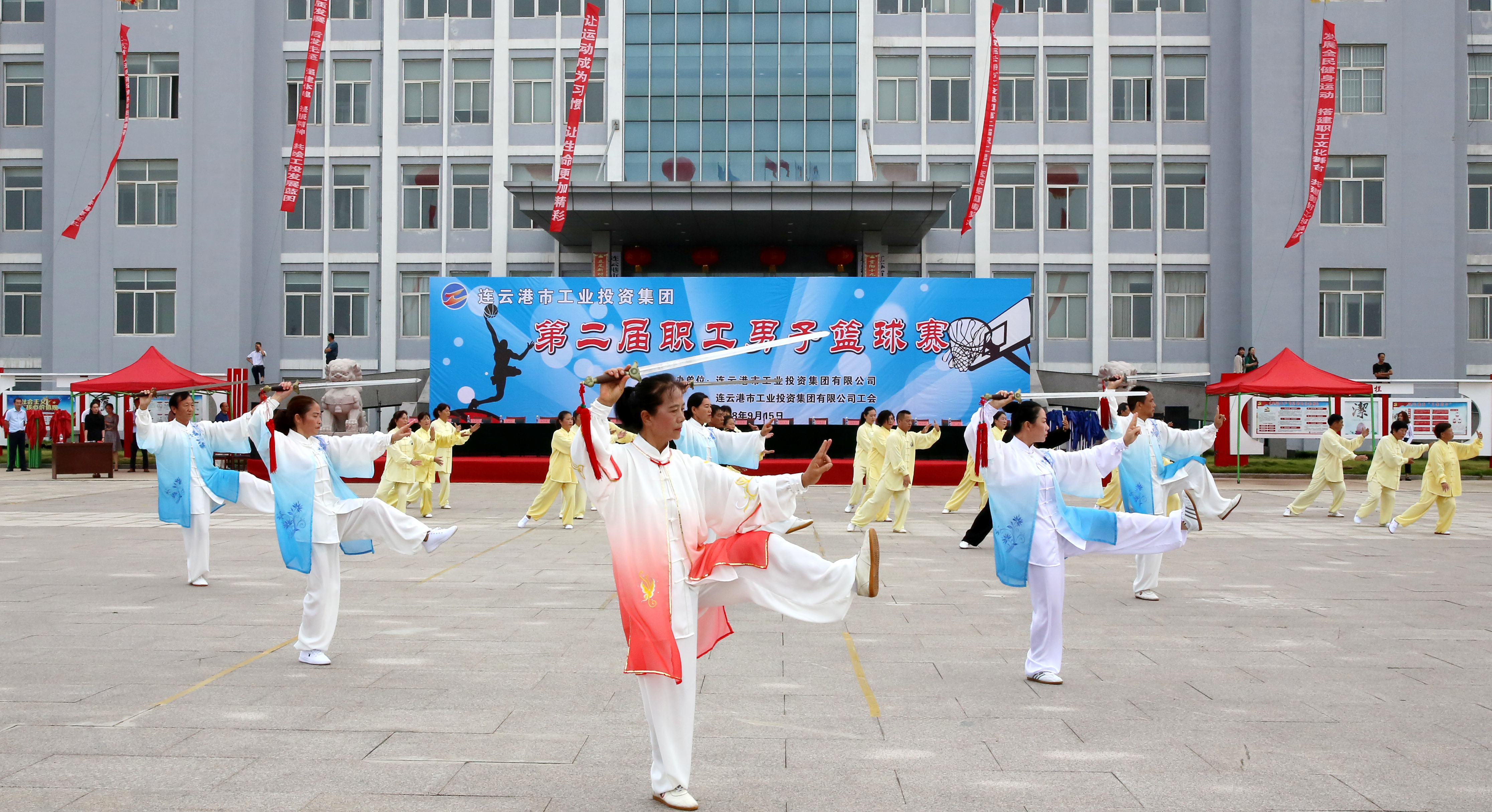 最后,楊龍宣布,連云港市工業投資集團第二屆職工男子籃球賽開幕。一時間,整個會場沸騰起來,彩旗揮動,掌聲、歡呼聲經久不息。