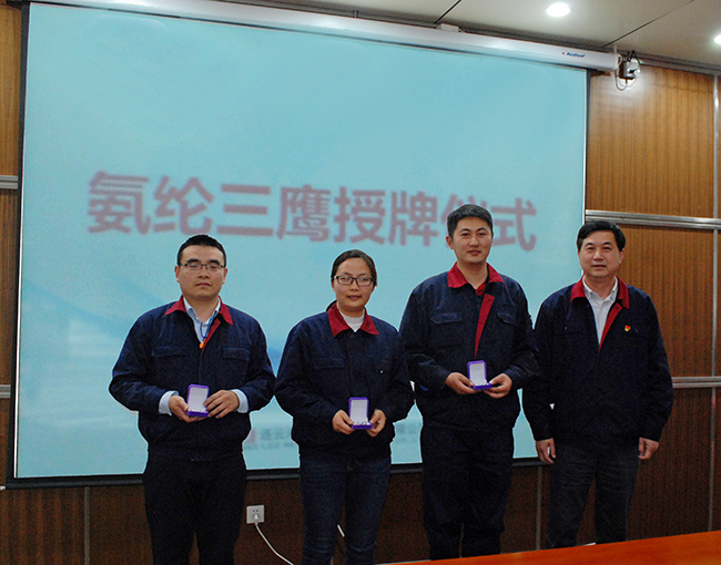 2021年5月12日下午,氨綸公司在1號會議室舉行“三鷹”授牌儀式。三鷹人才、各支部委員、勞模、五一勞動獎章獲得者等30余人參加了會議。公司黨委書記胡傳法、總經理張斌、紀委書記劉殿龍出席了儀式。