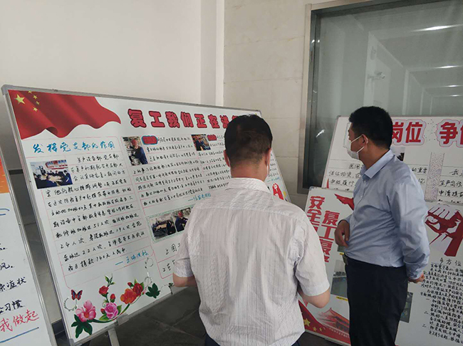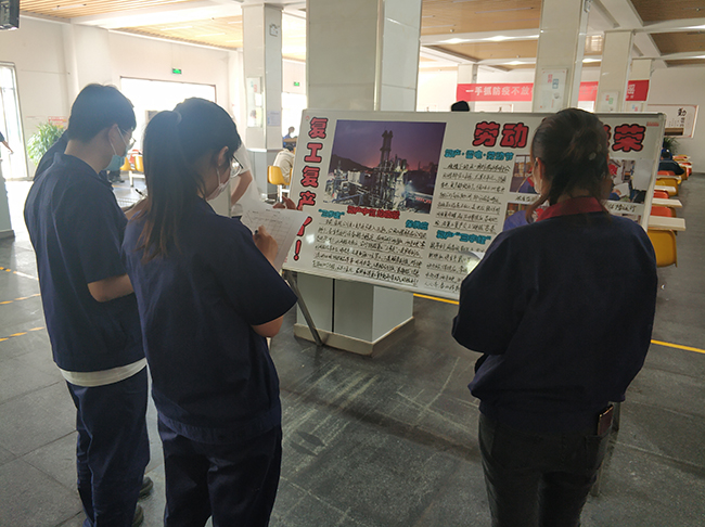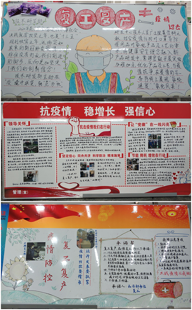 5月21日,公司開展了以“抗疫情•復工復產”為主題的板報評比活動。來自生產一部、生產二部、品保部、公用工程部、生產設備部、技術研發部以及管理部門的7個部門參加了評比。