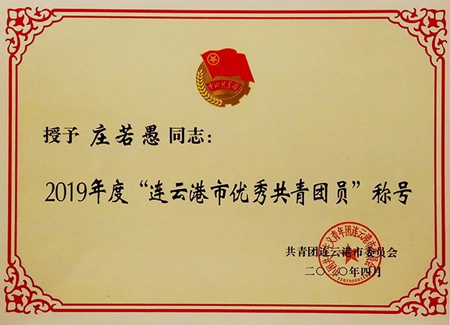 近日,團市委召開會議,會上對2019年度“連云港市五四紅旗團委”、“連云港市優(yōu)秀共青團員”、“連云港市優(yōu)秀共青團干部”等進行表彰。公司團委榮獲“2019年度連云港市市五四紅旗團委”稱號。生產(chǎn)設(shè)備部莊若愚榮獲“優(yōu)秀團員”稱號。