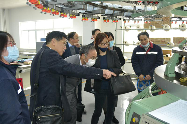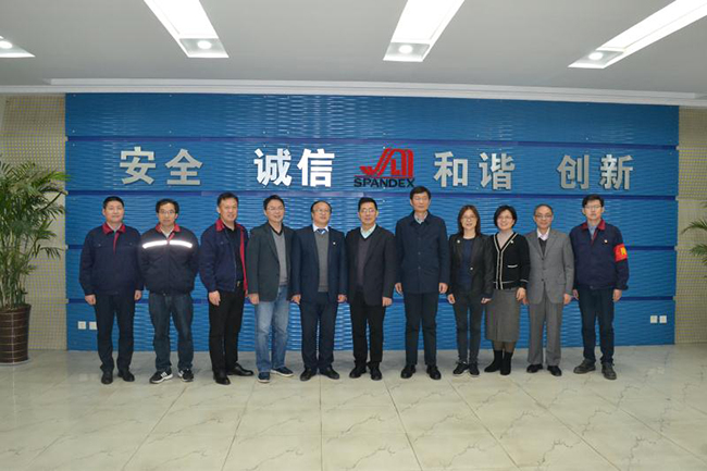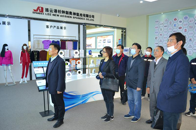 蔣教授一行先后參觀了公司產(chǎn)品展廳、八期生產(chǎn)線、研發(fā)中心,公司總經(jīng)理張斌對氨綸公司的發(fā)展歷程,差別化產(chǎn)品、戰(zhàn)略優(yōu)勢等進(jìn)行了詳細(xì)介紹,蔣教授對氨綸公司低溫?zé)嵴澈习本]、抗菌氨綸、驅(qū)蚊氨綸及氨綸生產(chǎn)全流程自動(dòng)化、智能化生產(chǎn)線等給予了高度評價(jià)。