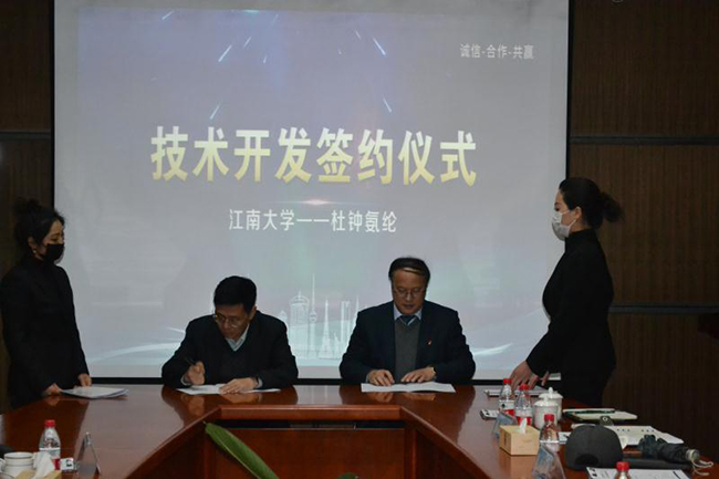 2020年4月10日,江南大學(xué)教育部針織技術(shù)工程研究中心主任蔣高明教授等一行來氨綸公司商討研究合作內(nèi)容并簽署合作協(xié)議。工投集團(tuán)副總經(jīng)理張其海,公司總經(jīng)理張斌及公司生產(chǎn)和技術(shù)主要負(fù)責(zé)人全程陪同。