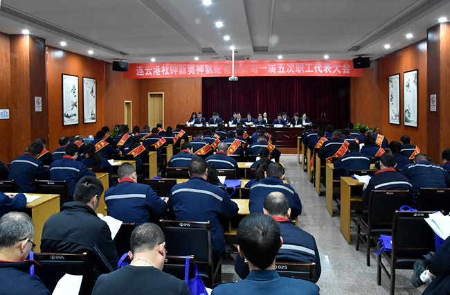 辭舊歲碩果累累,迎新春號角聲聲!2020年1月16日下午,在雄壯的國歌聲中,氨綸公司一屆五次職工代表大會隆重開幕。來自公司各條戰線的職工代表肩負全體氨綸人的重托,齊聚一堂,共商企業發展大計。總經理張斌同志作《工作報告》,黨委書記趙萬明講話。公司領導層、部門主管、職工代表以及獲獎代表共計90余人參加大會。