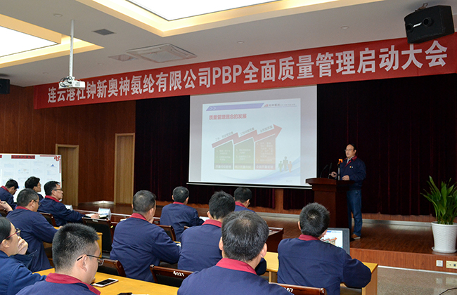 11月22日,氨綸公司PBP全面質量管理啟動大會在公司多功能廳隆重舉行。公司領導層、中層以上干部以及員工代表參加了本次啟動儀式,儀式由公司副總經理楊森主持。