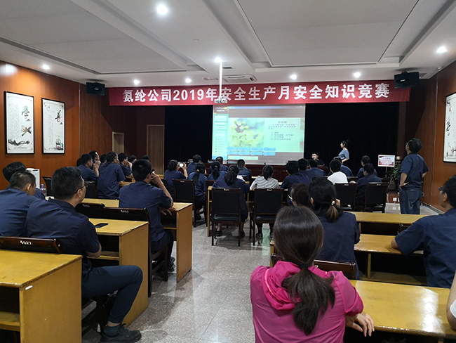 氨綸公司積極響應國家安全月活動,緊扣2019年安全月“防風險,除隱患,遏事故”的活動主題,由安全部主辦,7月5日,在公司多功能廳舉辦了2019年安全生產月安全知識競賽,此次活動共有八支代表隊選手參加了比賽。