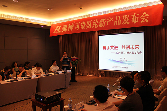 秋高氣爽,丹桂飄香。9月11日,氨綸公司聯合旗下經銷商廈門凱澤貿易有限公司在廈門舉辦“奧神?可染氨綸新產品發布會”。本次發布會著重展示了公司研發的新產品可染氨綸系列,成為本次發布會的亮點。