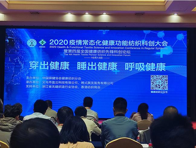 1013日,由中國保健協會健康紡織分會主辦的“2020疫情常態化健康功能紡織科創大會暨第四屆全國健康紡織先鋒科創論壇”在浙江義烏舉行。杜鐘氨綸公司總經理張斌參會并作了題為《健康功能氨綸開發和應用》的報告。