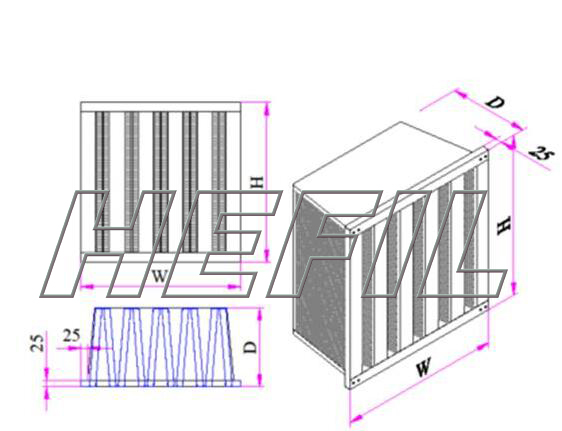- HVR耐溫無隔板V型過濾器 ◆過濾效率:H14