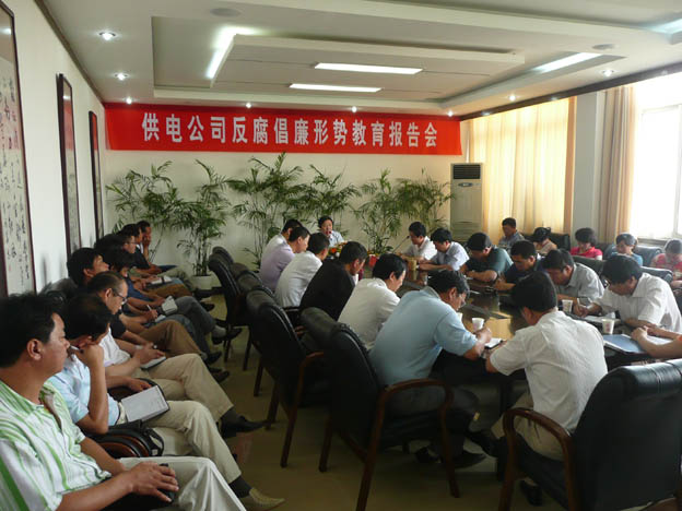 近日,我公司邀請(qǐng)了市紀(jì)委常委、市紀(jì)委秘書(shū)長(zhǎng)、市監(jiān)察局副局長(zhǎng)雷生保同志來(lái)我公司作反腐倡廉形勢(shì)教育報(bào)告,公司領(lǐng)導(dǎo)、機(jī)關(guān)中層干部、各供電所領(lǐng)導(dǎo)班子及部分職工代表參加了會(huì)議。
