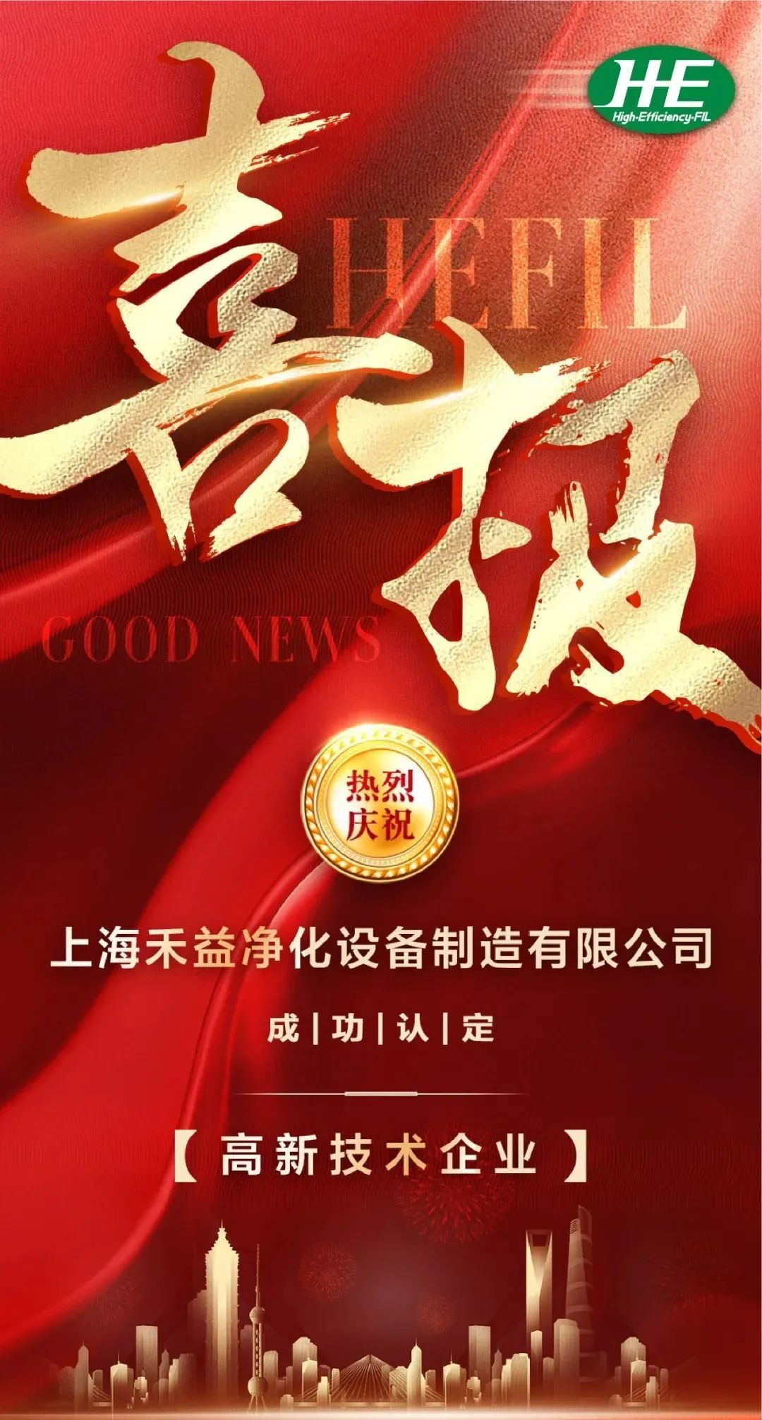 禾益環(huán)境高新技術(shù)企業(yè)認(rèn)證從2015年定、2018/2021年復(fù)審再次認(rèn)定,在《關(guān)于公示2021年度上海市第五批擬認(rèn)定高新技術(shù)企業(yè)名單的通知》的公示中,上海禾益凈化設(shè)備制造有限公司再次入圍上海市2021年高新技術(shù)企業(yè)名單,榮獲高新技術(shù)企業(yè)認(rèn)定。