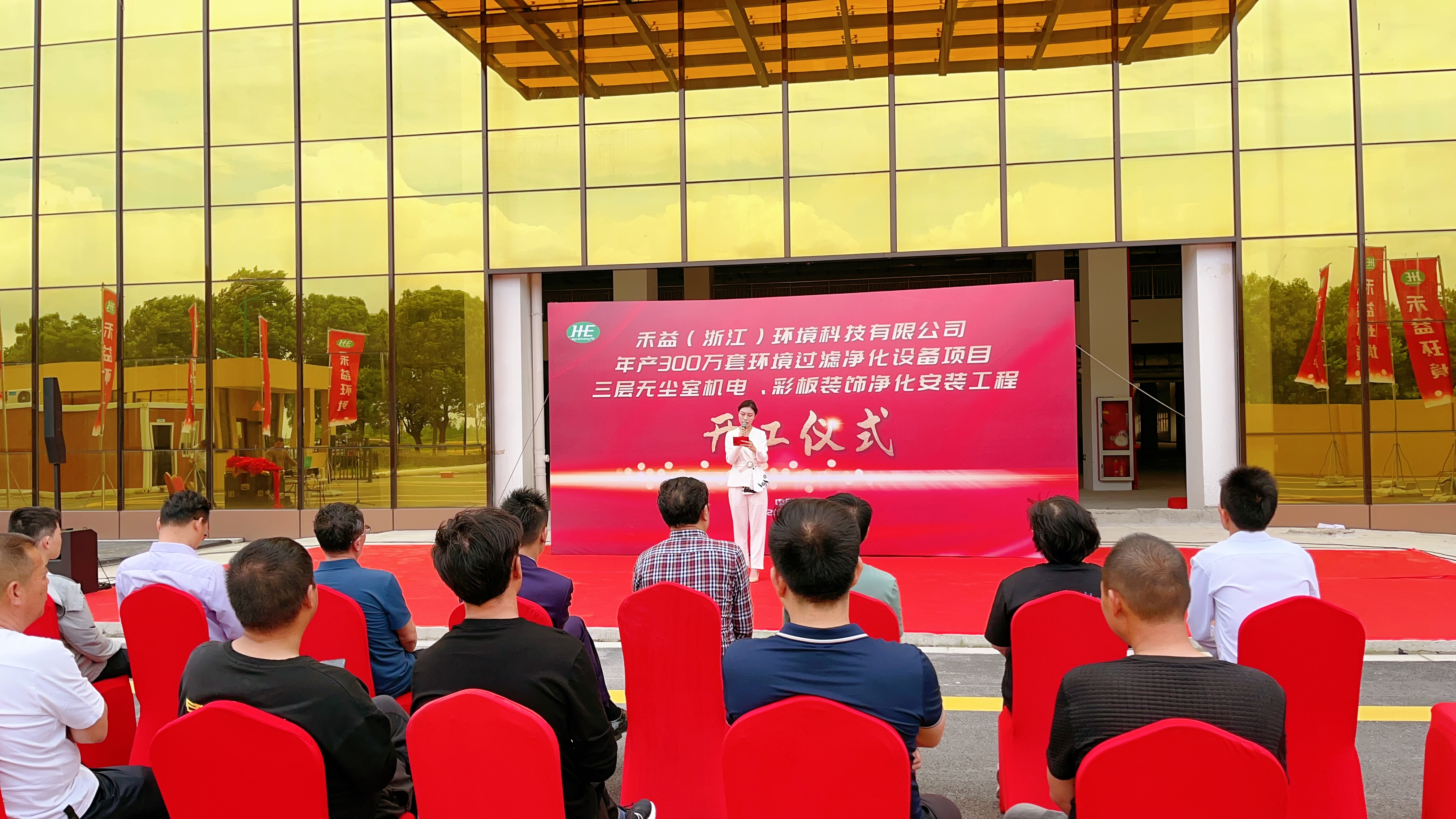 在熱烈的氛圍中,主持人登臺介紹來賓,并邀請禾益集團總經理陳滿意上臺致辭。他表示,禾益集團自成立以來,一直致力于凈化設備制造技術的研發與創新,此次項目的開工是公司發展歷程中一個重要的里程碑。通過建立技術研發中心,禾益集團將擁有更強大的創新力量和技術優勢。