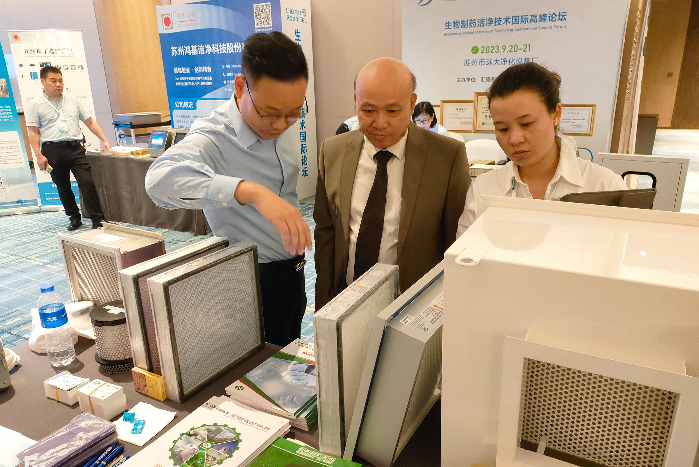 潔凈技術是潔凈基礎學和多學科交叉融合的一個學科,在生物醫藥和生物安全實驗室領域有著廣泛應用,在生物醫藥高質量發展過程中發揮了不可替代的重要作用。禾益環境作為凈化設備制造行業領軍企業,受邀參加此次論壇。公司團隊攜自主研發的除塵環保設備和生物制藥專用高級過濾器等新產品參展,吸引業內人士及行業領導參觀。通過近距離與行業同仁進行技術交流,以及技術人員的現場解答與技術手冊分享,全面展示禾益環境綠色、安全、節能的產品研發成果與創新解決方案,積極助力潔凈行業的綠色低碳發展。