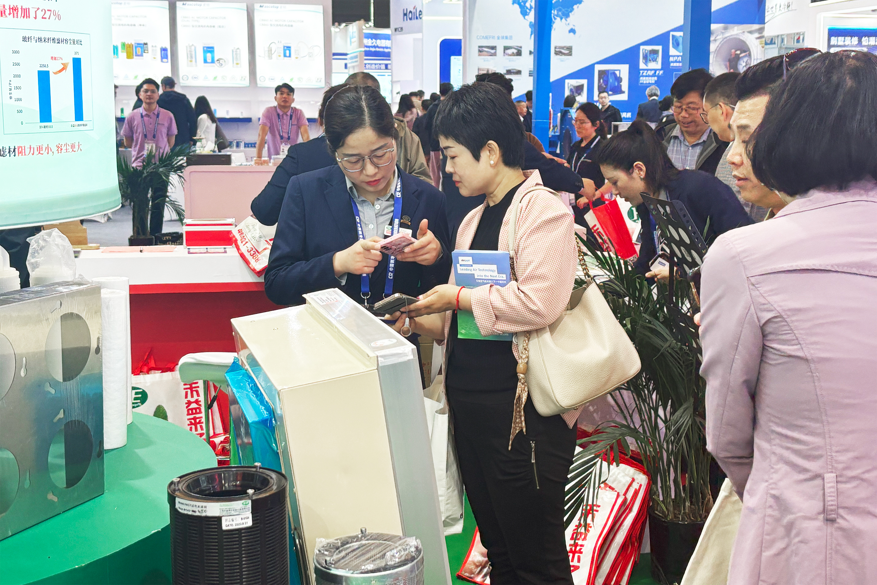 禾益環境董事長王艷、總經理陳滿意共同亮相了本屆展會,兩位領導親臨現場,前往一線與客戶零距離溝通,熱情洋溢講解本公司相關理念與研發產品。力求將公司“因潔凈而生·為環境而鑄”的初心和理念,傳遞給每一位參觀人員。