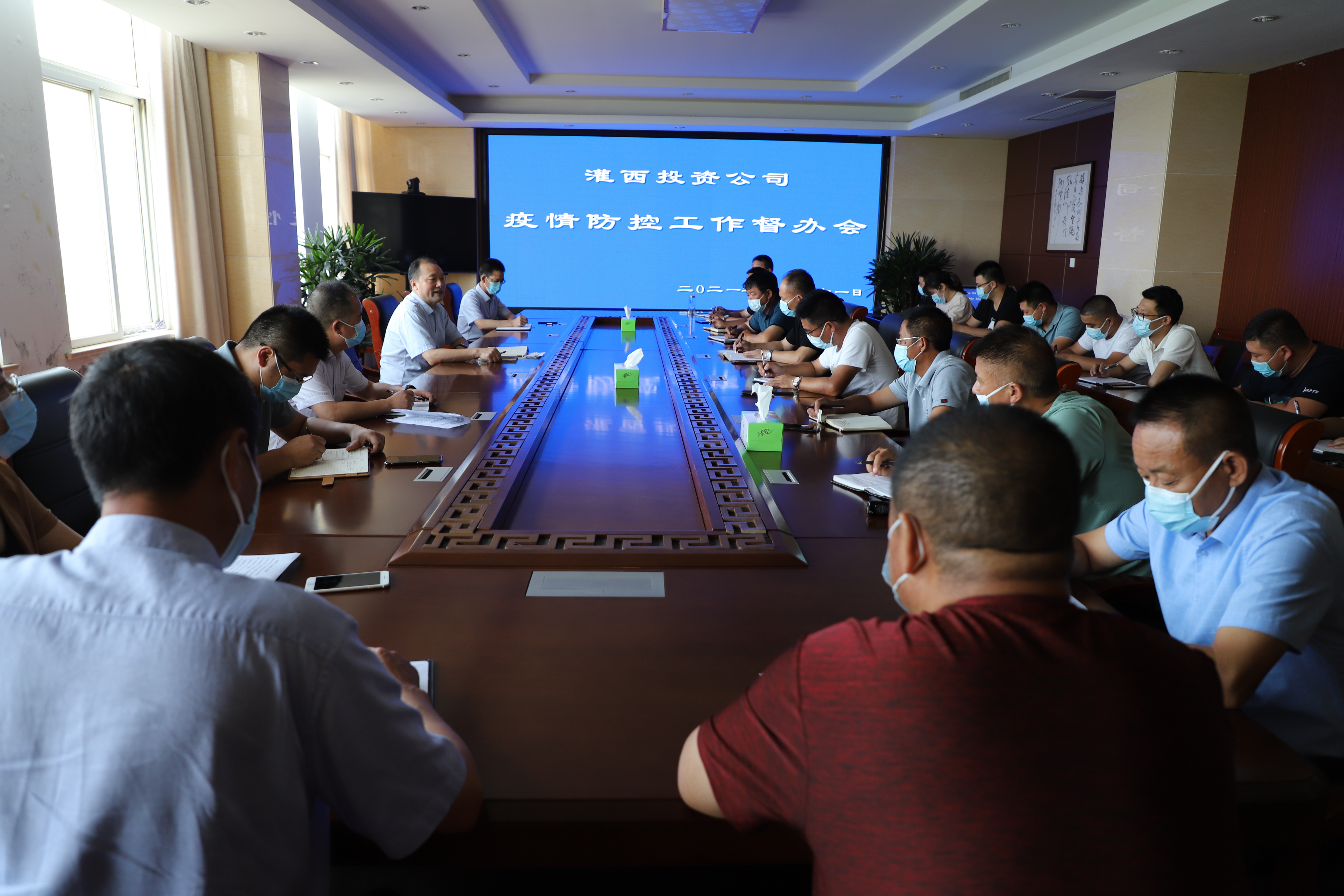 731日下午,灌西投資公司在三樓會議召開疫情防控工作督辦會,公司黨委書記、董事長、總經理李國文、黨委副書記、工會主席王宏、總經理助理潘二衛,疫情防控工作組成員、各部門單位行政負責人參加會議,燕尾港鎮有關領導出席了此次會議。