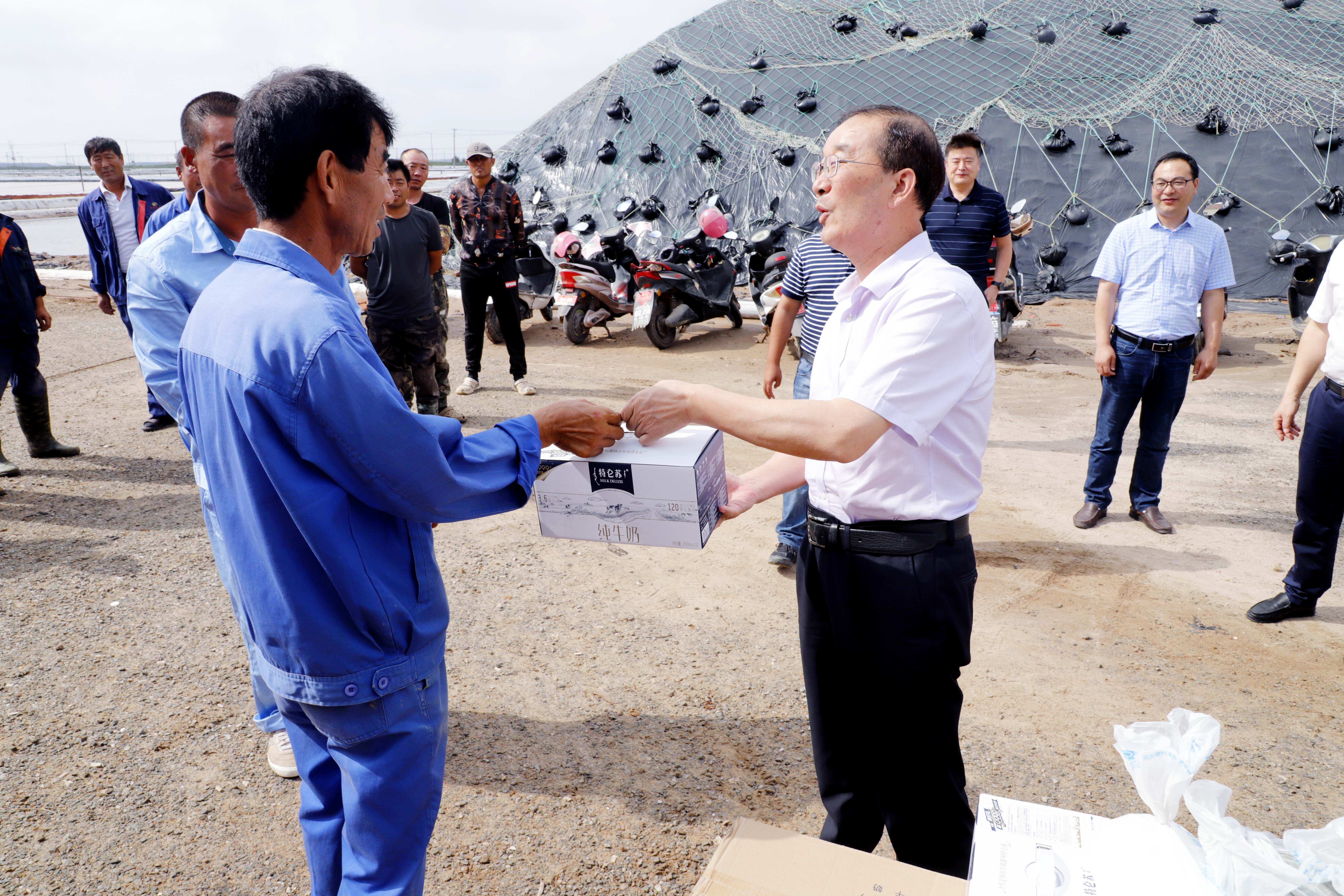 “大家辛苦了。”胡建明微笑著與一線工人一一握手表示感謝,感謝大家為公司做出的貢獻,并送上了清涼飲品。同時,他還詳細詢問了生產情況,囑咐在高溫天氣下,既要抓好安全生產,也要勞逸結合,保重身體,嚴防中暑。“最近天氣比較炎熱,大家要休息好,上班要注意安全,做好防暑降溫措施,保持身體健康。”