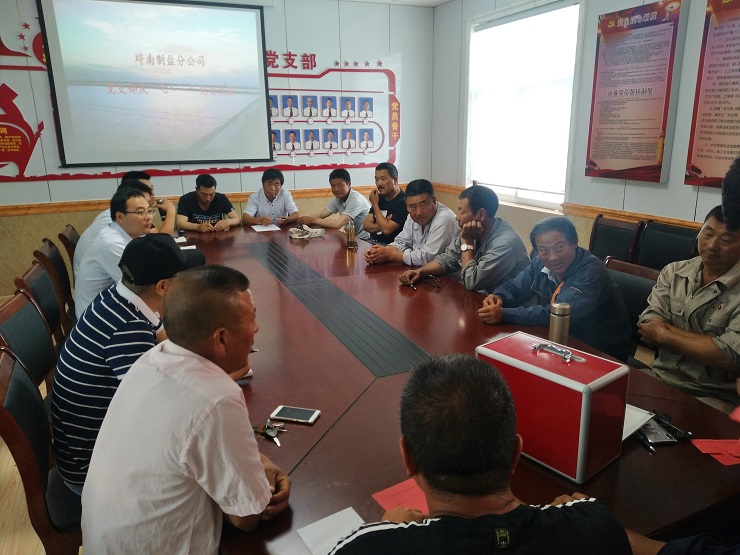 近日,埒南制鹽分公司在工區會議室召開全體黨員大會,慶祝“七一”的到來。