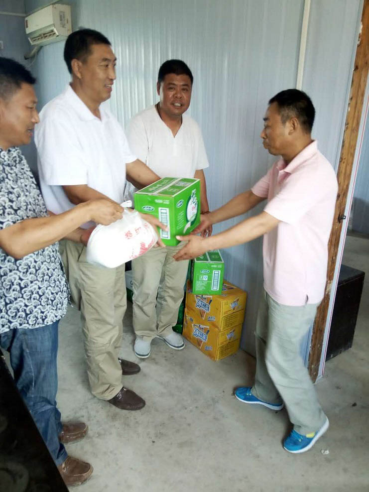 由于近日連續(xù)高溫,西旺水產(chǎn)公司認(rèn)真做好防暑降溫工作。一是及時調(diào)整池塘值班點(diǎn)上的人員作息時間,避開高溫時段,備好了兩套防暑藥物盒;二是加強(qiáng)對養(yǎng)殖戶夏季安全生產(chǎn)、防暑預(yù)防、中暑急救等知識的宣傳;三是開展“送清涼”工作,發(fā)放防暑降溫費(fèi)、購買防暑物品送到一線員工手里,表示慰問。圖為到西旺公司領(lǐng)導(dǎo)到一線為員工送上防暑物品。(西旺工會)