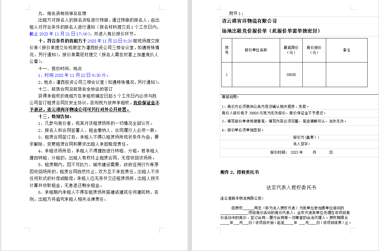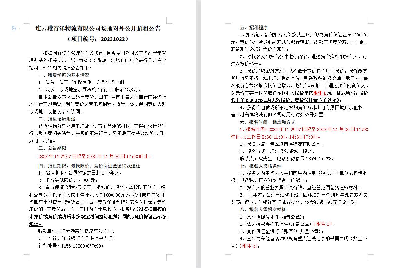 連云港宵洋物流有限公司場地對(duì)外公開招租公告