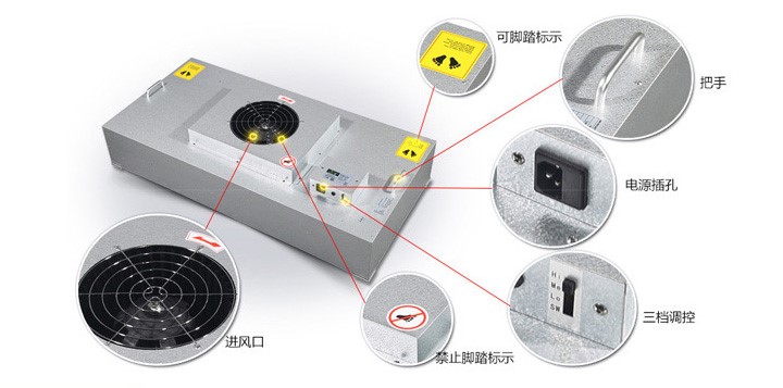 ◆FFU風機過濾機組是由一臺高性能AC交流風機、箱體和HEPA/ULPA過濾器組成