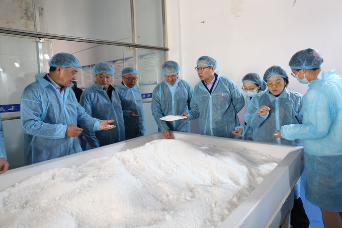 10月13日上午,蘇鹽協(xié)會(huì)副理事長(zhǎng)伏運(yùn)景帶領(lǐng)省戰(zhàn)略與發(fā)展研究中心及省經(jīng)濟(jì)和信息化研究院相關(guān)研究人員一行,到我公司開(kāi)展編撰省鹽行業(yè)年度發(fā)展報(bào)告相關(guān)企業(yè)調(diào)研。集團(tuán)公司黨委委員、總會(huì)計(jì)師匡友本,我公司主要領(lǐng)導(dǎo)陪同調(diào)研。伏運(yùn)景一行參觀了公司雪花鹽車間、包裝鹽車間,聽(tīng)取公司基本情況和發(fā)展情況介紹。伏運(yùn)景對(duì)我公司充分重視本次調(diào)研工作表示感謝,肯定了鹽改以來(lái)我公司先導(dǎo)性發(fā)展經(jīng)驗(yàn)和成就。(金宣)