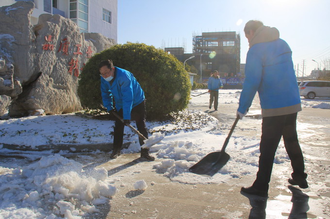 12月29日,連云港市各地普降大雪,氣溫低、積雪厚、道路結冰,給公司職工的安全出行和生產(chǎn)生活帶來很多不便。29-30日,公司領導朱桂玉、曹開明、田磊、何啟明、邵琴、李忠祥帶領廣大職工群眾開展了義務掃雪活動。大家冒著風雪,不畏嚴寒,對路面積雪進行清掃,鏟除了廠區(qū)主干道的冰層,保障了公司職工安全出行和安全生產(chǎn)工作的開展。(金宣)