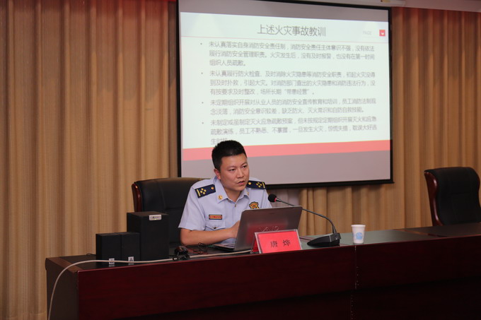 為規(guī)范消防安全管理,提高公司干部職工消防安全意識和火災(zāi)應(yīng)急處置能力,7月7日,我公司邀請連云區(qū)消防隊(duì)副隊(duì)長唐燁,在三樓會議室開展消防安全知識培訓(xùn)。公司董事長、黨委書記、總經(jīng)理朱桂玉,黨委副書記、工會主席曹開明,副總經(jīng)理何啟明,總經(jīng)理助理李忠祥,各單位、車間、部室人員參加了培訓(xùn)。