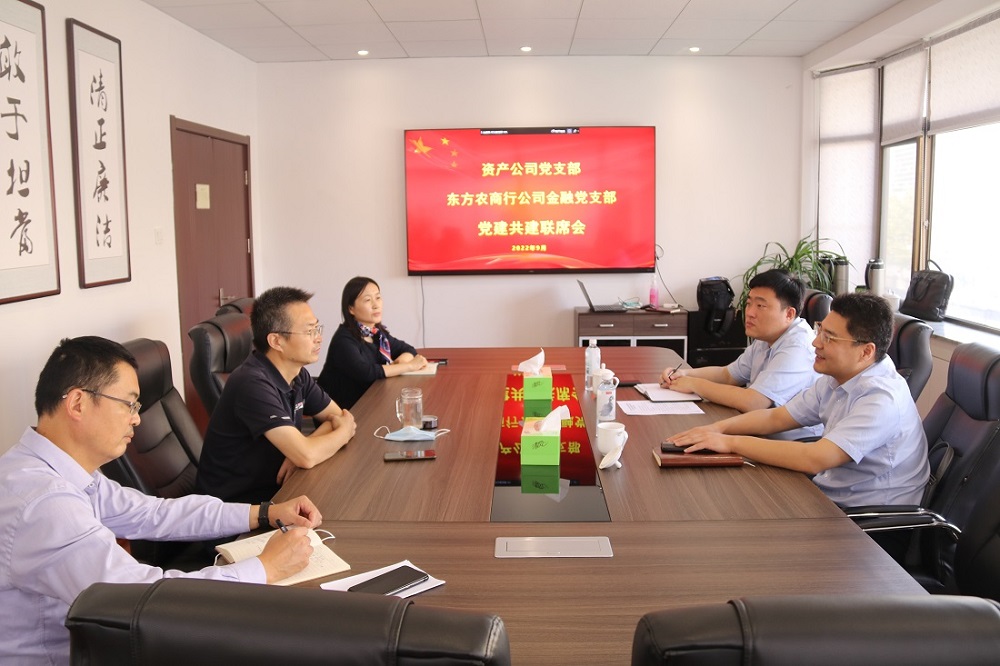 為扎實推進“三聯三促”書記項目,發揮黨建引領促業務交流提升的作用,9月22日上午,在格斯達公司會議室,資產公司黨支部與東方農商行公司金融黨支部開展了以“黨建業務相融合,互促進步共發展”為主題的黨建共建聯席會,會上,連云港市東方農商行副行長徐明亮代表公司金融黨支部就與資產公司黨支部開展探索合作共建等方面進行了座談。金融板塊黨支部書記、董事長徐兵,黨支部副書記副總經理王順友,副總經理丁丹陽參加會議
