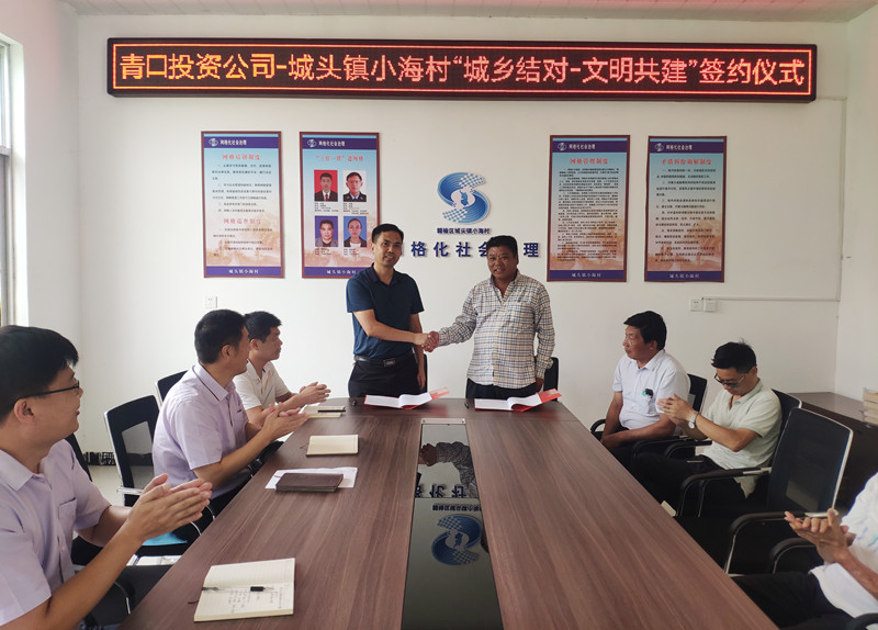 為充分發揮省級文明單位示范帶動作用,推進城鄉文明一體發展,為構筑道德風尚建設高地、建設社會文明程度高的新江蘇作出積極貢獻,8月26日上午,青口投資公司與城頭鎮小海村“城鄉結對 文明共建”簽約儀式在小海村舉行。