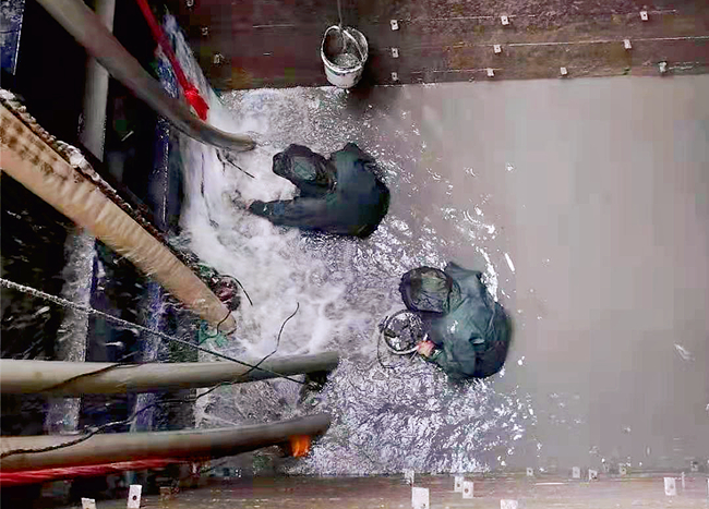 連日來,深度4米的泵池底一批又一批工人冒雨在泥漿中接續奮戰。