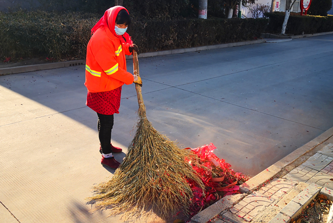 “大年初一,大街小巷最多的就是爆竹的碎屑。過年大家都休息了,但我們不能休息啊,得把咱鹽場打掃干凈,讓大家過個舒坦的新年!”一位環衛工人說道。(青宣)
