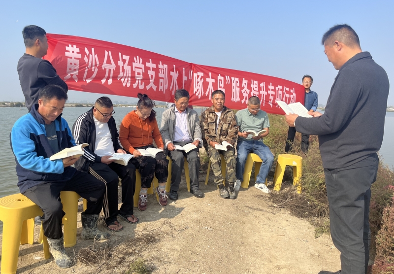 近日,黃沙分場黨支部開展水上“啄木鳥”服務提升行動,組織養殖戶黨員和技術能手聚在塘頭學習黨的二十大報告,開展養殖技術培訓和生產服務,切實打通黨建引領、服務養殖的“快速通道”。(盧伯斌)