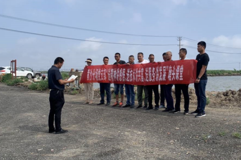 近日,黃沙分場黨支部開展“送精神講感悟、送技術講共富、送服務講發(fā)展”塘頭課堂。黨員、養(yǎng)殖戶齊聚塘頭,深入學習黨的二十大精神,結合中秋、國慶“雙節(jié)”,共同探討交流水產品銷售行情,提升養(yǎng)殖整體效益。(盧伯斌)