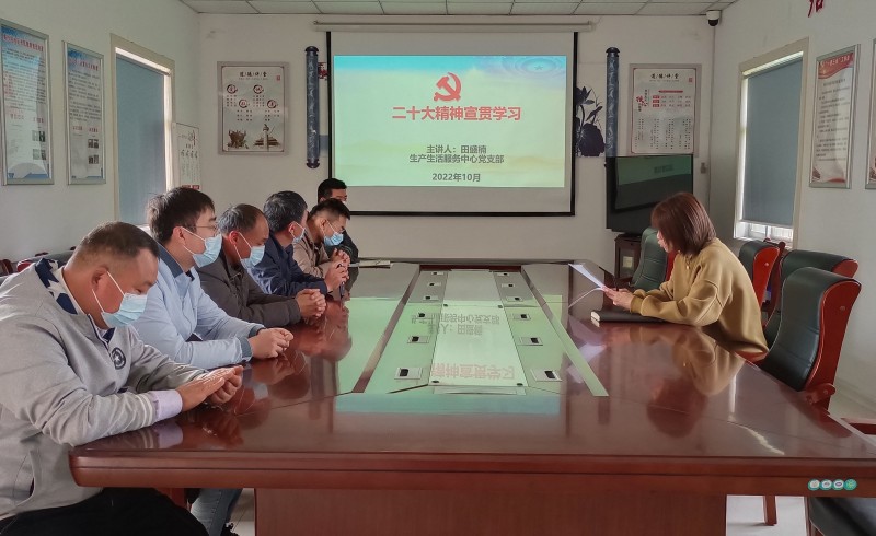 近日,生產生活服務中心黨支部組織黨員職工深入學習宣貫黨的二十大報告和習近平總書記一系列重要講話精神,引導黨員職工不僅要學懂、弄通,深刻把握歷史定位和發展大勢,更要以精神實質為引領,立足本職崗位,在做實、做精上下功夫,更好地肩負起新時代的歷史使命。