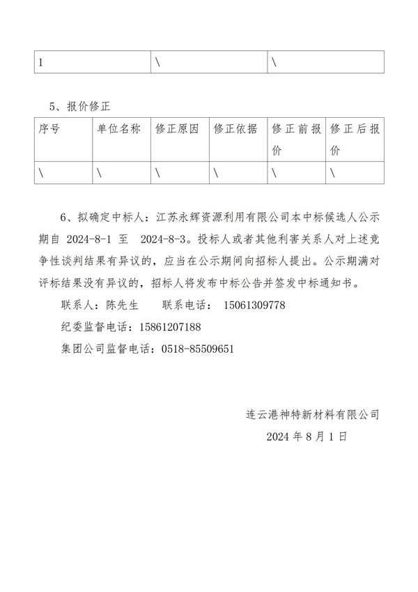 神特公司2024年危廢處置服務中標候選人公示