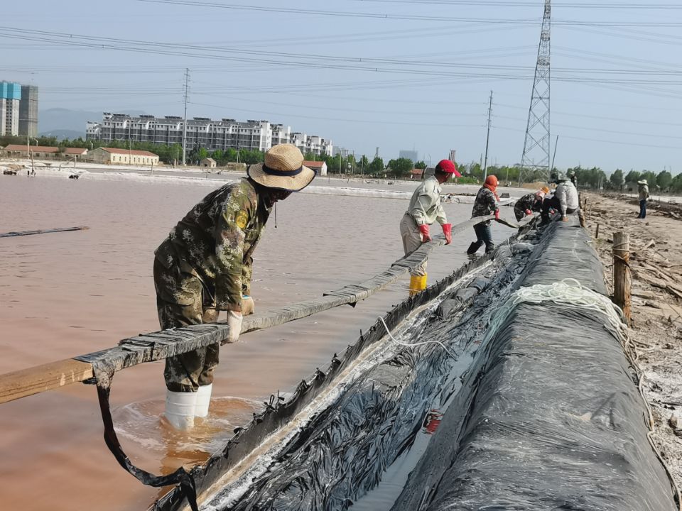 礦鹽生產班組提前謀劃原鹽集運前的準備工作。2022年秋扒鹽已經順利落下帷幕,工人們利用收鹽后的空隙對鹽池板進行修整、整理收放系統以及將扒鹽機械進行保養入庫等等。同時,修整運鹽主干道,地基較軟處以鋼板鋪墊,確保運鹽車輛安全通過。排查廩基周圍高低壓線路,在作業的同時堅守安全生產底線。等待天氣轉好,將立即進行原鹽集運。