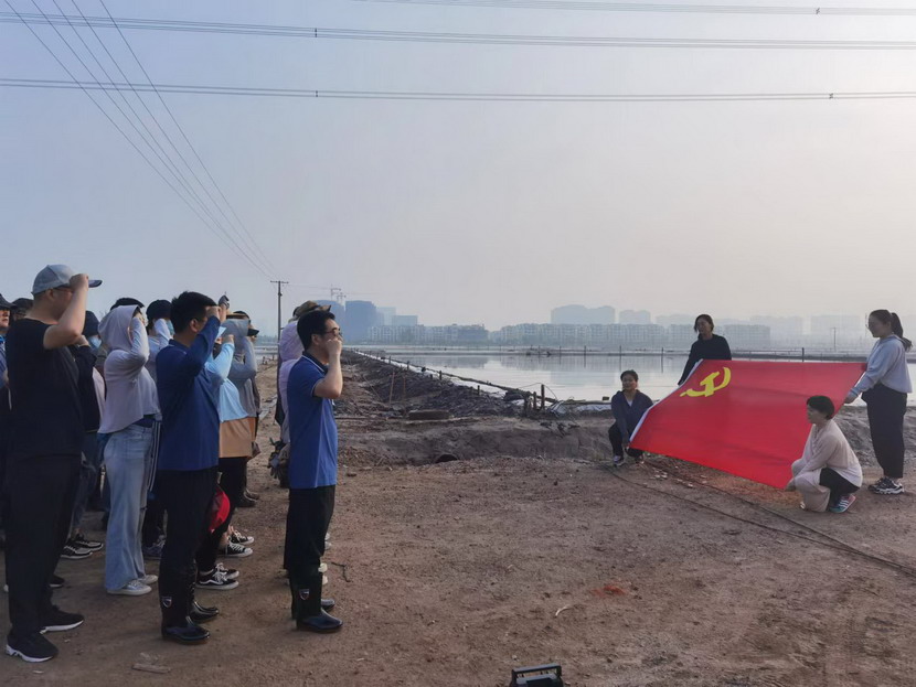 伴著朝陽(yáng),全體黨員在灘頭進(jìn)行了集體宣誓,重溫入黨誓詞。