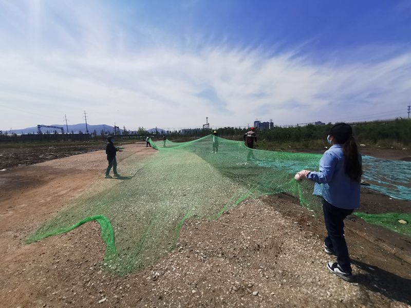 “啦啦啦,我們都是鋪網手,鋪網本領強”在海州灣車站小攤,資源分公司全體職工和公司團委組織的青年員工唱著歌,哼著曲,僅僅只用了一上午,就完成了100多畝小攤的裸露土地的防塵網鋪設工作,“小伙伴”們擦著汗,喝著水表示“鋪網,我們是專業(yè)的”。