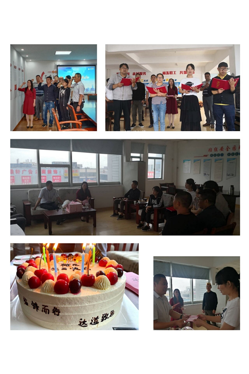 書記致辭。為黨員同志送上暖心祝福話語,向職工群眾提出爭先奮進(jìn)希冀,替臨達(dá)公司樹立更進(jìn)一步目標(biāo)。重溫誓詞。進(jìn)一步增強黨性,牢記黨的宗旨,恪守黨的紀(jì)律,堅定理想信念,充分發(fā)揮先鋒模范作用。贈送賀卡。書記親手為黨員同志們制作賀卡、寫下寄語,送到黨員同志們的手中。集體誦讀。全體職工高聲朗誦了詩詞《我的祖國》,激發(fā)愛國熱情,陶冶愛國情操。活動最后,公司工會為職工精心準(zhǔn)備了豐盛的生日餐,讓職工深深體會到來自“娘家人”的溫暖。