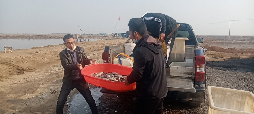 春季放苗,秋冬收獲!目前正值水產養殖收獲季節,但新冠疫情給養殖戶帶來了不少的麻煩。13號池養殖戶因疫情原因雇不到人捕魚而發愁,養殖分公司工會分會主動組織員工給正在收獲的養殖戶助力,得到養殖戶一致好評。“平時揚水、修電隨叫隨到,剛把路修好現在出魚又來幫忙,非常感謝你們。”在現場,養殖戶董永祥激動的說。