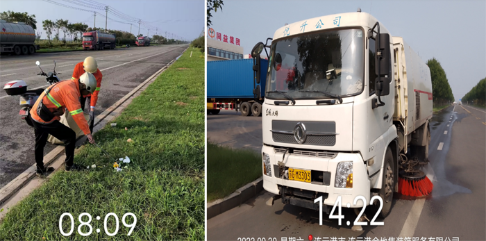 ? ? ? ?提升道路保潔率。出動高壓沖洗車、清掃車、對園區主次街路開展洗掃除塵、清掃保潔作業,對重點路段祥和路、云港路實行“前高壓、后洗掃”的聯合編組作業模式,增加機械清洗頻次,保證道路潔凈度,進一步降低道路含塵量。充分發揮職業職能優勢,實施“立體化、全覆蓋”的保潔模式,通過人機結合清洗主道和輔道5萬余米,為園區的靚麗再添新風景。