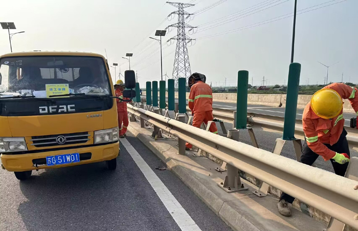 9月11日下午,市政分公司開(kāi)展橋梁中分帶缺損防眩板專(zhuān)項(xiàng)維修行動(dòng),工作人員加班加點(diǎn),攜手奮戰(zhàn),完成維修任務(wù),排除安全隱患,保障過(guò)往車(chē)輛行駛安全。