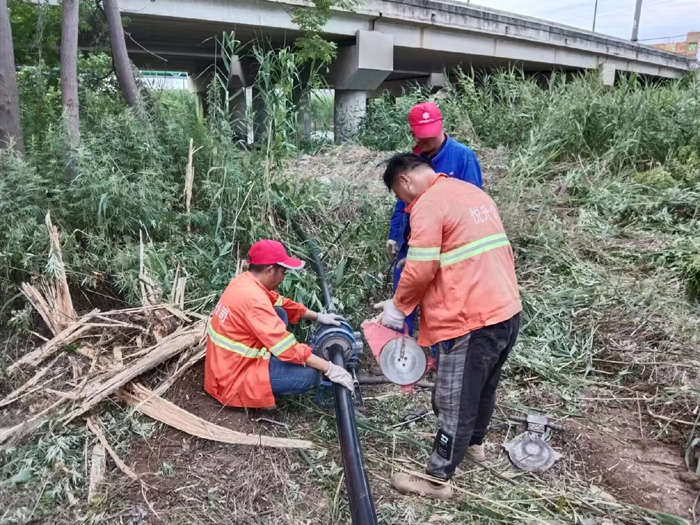 ? ? ? ?供水組接到任務后,積極采取措施,切實解決用水問題。考慮到原管網承壓脆弱,為避免造成水資源的浪費,針對性對加水點上游老化管道進行更換改造。在施工過程中,由于安裝管道在野外作業,施工環境較差,隊員要在一人高蘆柴地里來回穿梭,進行管道布設、管道熔接,加上室外溫度達到35度以上,灼熱感、蚊蟲叮咬讓隊員們相當難受,隊員季小東、劉佃寶脖子已經出現紅腫,率先領到“紅包”。供水班組全體人員埋頭苦干,毫無怨言,克服天氣及環境不利因素影響,搶時間、抓進度,經過3日全力奮戰,順利完成此次管道更新改造任務。此次安裝作業,已對326米老舊管道進行了更換,加裝直徑100閘閥2個、直徑100水表1只、100*65型地上式消火栓1個。(楊維軍)