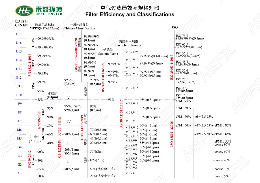 空氣過濾器效率規格對照表